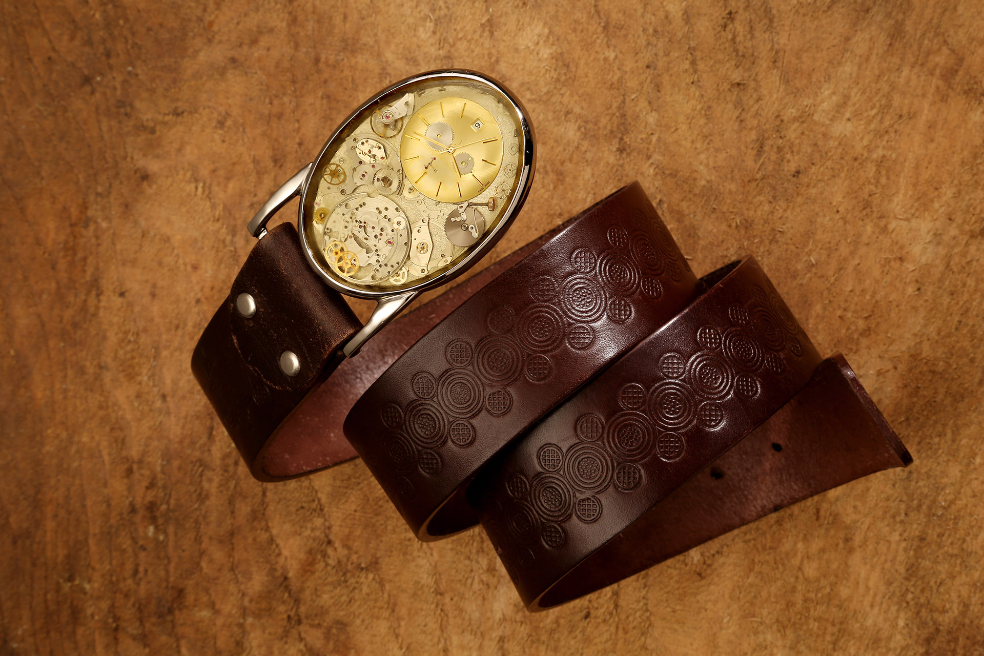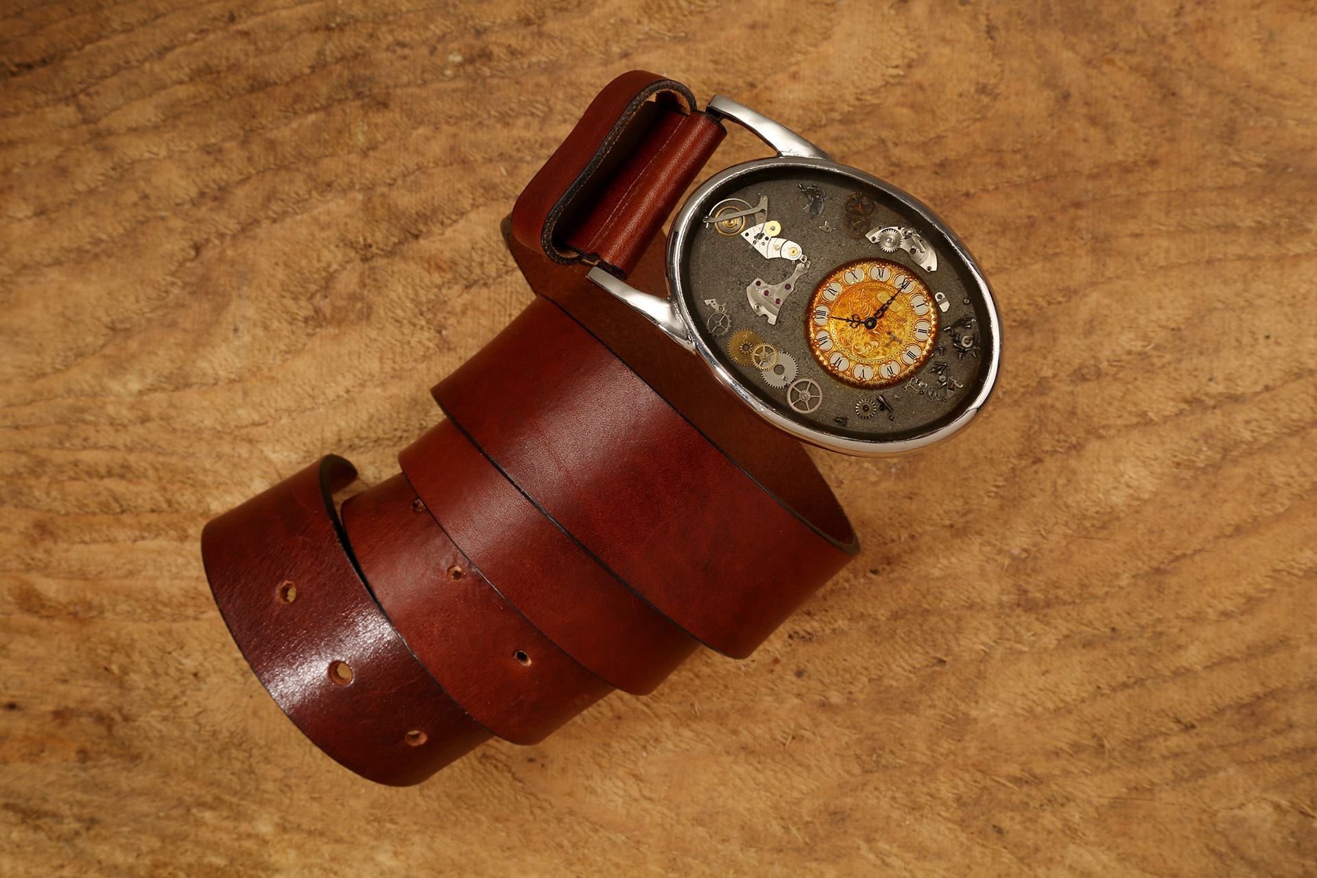 Bei Timebelt wird die Zeit nicht gemessen, sondern gestaltet. Jedes unserer Stücke beginnt als authentisches Uhrwerk: ein kleines mechanisches Universum aus Rädern, Federn, Brücken und Schrauben, das einst zuverlässig den Rhythmus eines Lebens begleitete. In unserer Manufaktur wird es sorgsam zerlegt, gereinigt, neu arrangiert und mit viel Fingerspitzengefühl in eine Gürtelschnalle verwandelt, die Charakter hat.